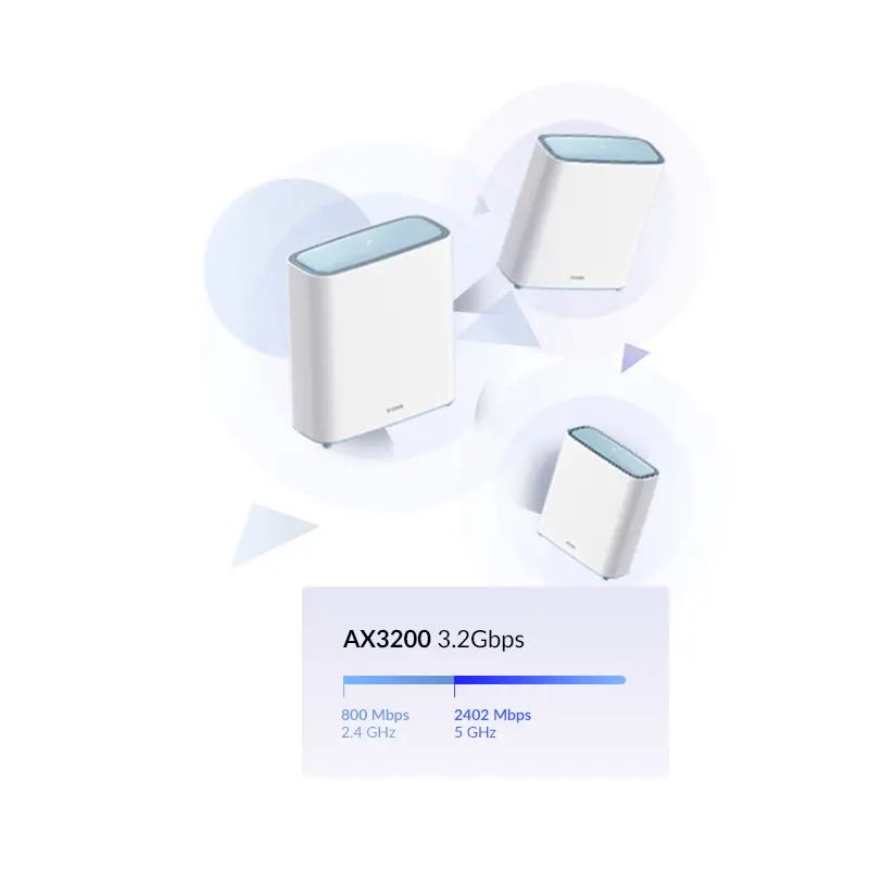 Experimente velocidades Wi-Fi 6 de próxima geração mais rápidas, com o Kit D-Link M32 EAGLE PRO AI, com gestão avançada de canais AI e definição de prioridades para um acesso rápido e eficiente à Internet em todas as salas.