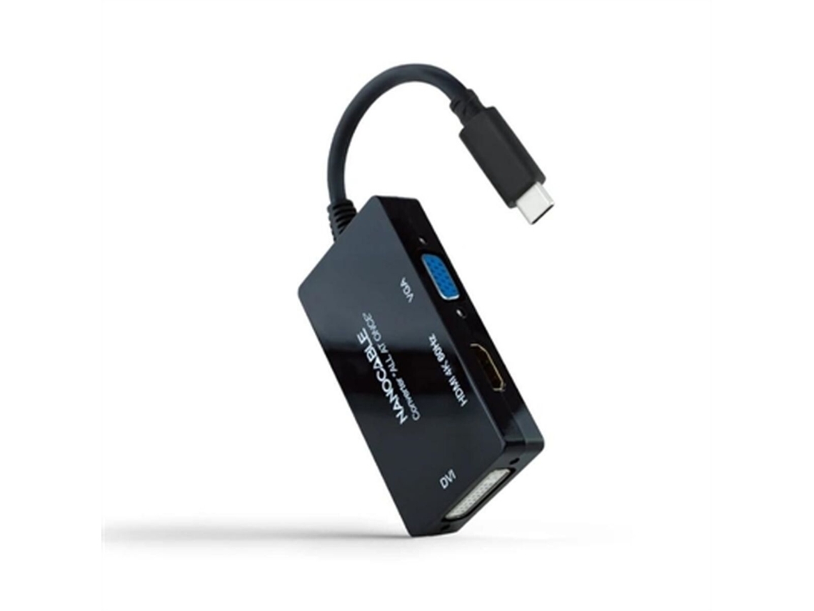 CONVERSOR NANOCABLE USB-C MACHO > HDMI FÊMEA+ SVGA FÊMEA+ DVI FÊMEA