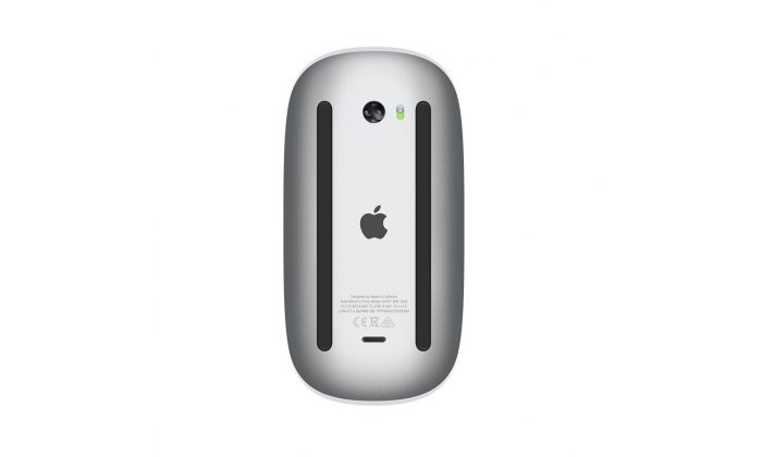 O Magic Mouse, sem fios e recarregável, possui um design incrível que desliza facilmente na secretária. A superfície Multi-Touch permite gestos simples como percorrer documentos ou sites.