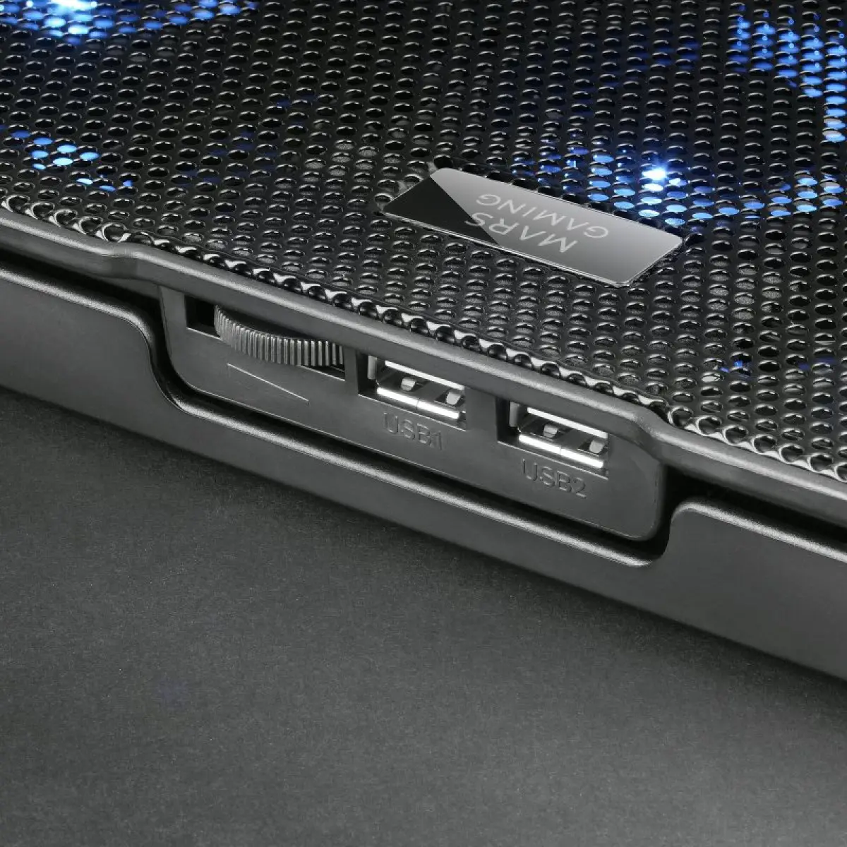 Aumente o desempenho do seu portátil ao máximo com a base MNBC23. Equipado com 6 ventoinhas com iluminação LED azul, esta base oferece controle total sobre o fluxo de ar. Graças ao botão de controlo de velocidade, pode ajustar a potência das ventoinhas conforme as suas necessidades, garantindo um ótimo desempenho mesmo durante as sessões mais exigentes. Esteja a trabalhar em projetos intensivos ou desfrutando de sessões de jogos prolongadas, o dock MNBC23 garante que mantenha o seu portátil em temperaturas ideais para desempenho ininterrupto.
