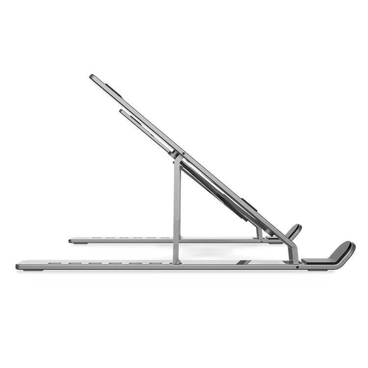 Com um visual elegante, este suporte dobrável para laptop possui um design ergonômico, podendo se adaptar a diferentes posições, até um total de 7, permitindo posicionar o computador de forma que a tela está no ângulo da visão, ajudando a evitar problemas cervicais.