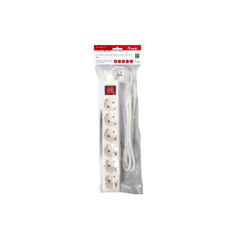 BLOCO EQUIP Power Strip 6 Tomadas Schuko C/ Interruptor Branco