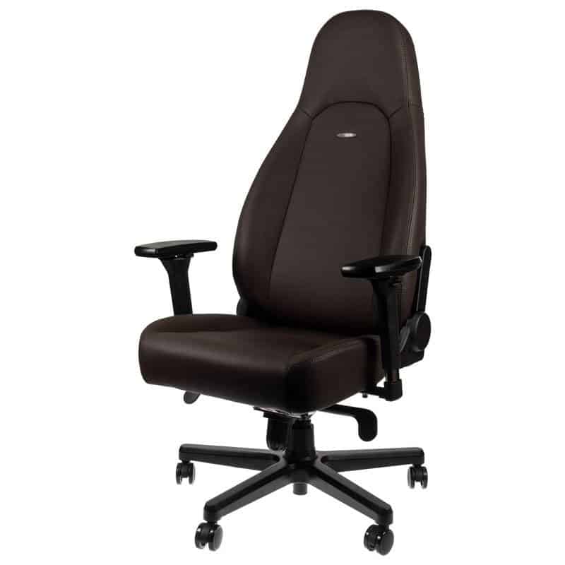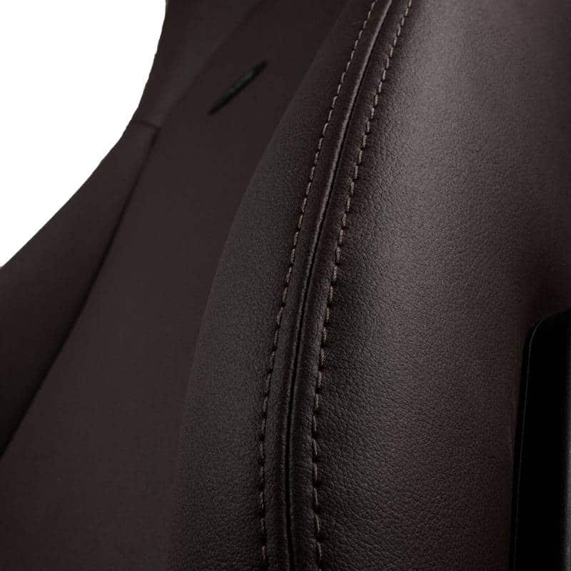 A cadeira de gaming noblechairs ICON Java Edition vem com uma sofisticada cor de café. A cadeira e as costas são cobertas uma requintada imitação de couro. Este material foi desenvolvido e produzido na Alemanha. Caracteriza-se por uma textura macia e porosa que maximiza o fluxo de ar. Esta combinação de respirabilidade, a suave imitação de couro e a espuma fria porosa asseguram à ICON Java Edition um conforto notável durante longas sessões de gaming.
