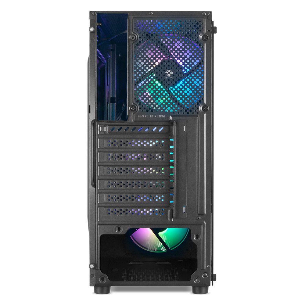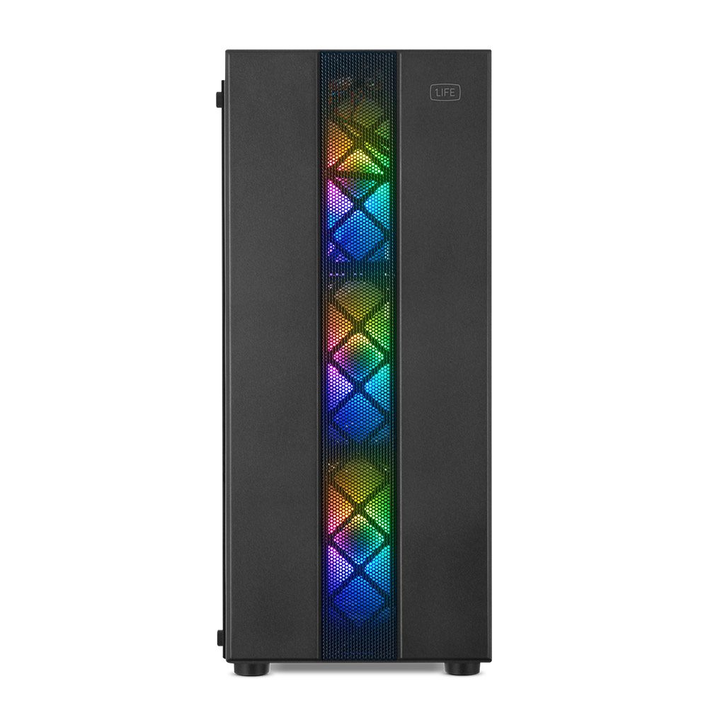 A 1Life c:ray é uma caixa para PC ATX com sistema de iluminação RGB. Apresenta um painel lateral em vidro temperado.