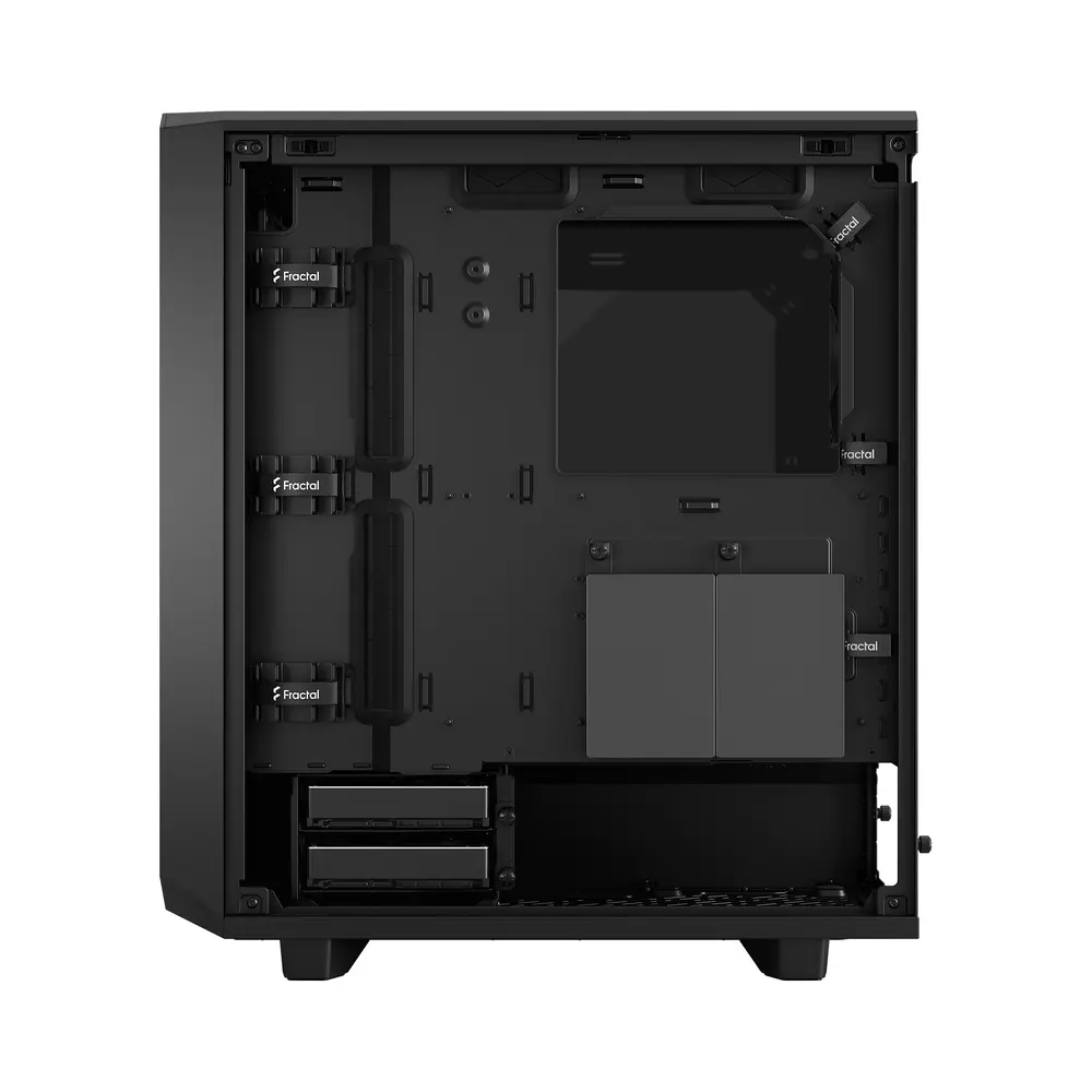 O filtro frontal de nylon pode ser removido para um fluxo de ar extra, deixando a frente em mesh a lidar com a filtragem. A utilização inteligente do espaço permite a Meshify 2 Compact se gabar do desempenho e capacidade de caixas maiores apesar da sua dimensão notavelmente compacta, e do design de fluxo de ar filtrado.