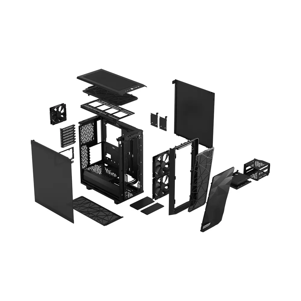 Meshify 2 Compact é uma caixa de alto desempenho com um arrojada, de inspiração furtiva estética. O seu exterior marcante apresenta um vidro temperado sem parafusos e nivelado, um painel superior amovível concedendo excelente acesso interior, e uma porta USB frontal 3.1 Type-C.