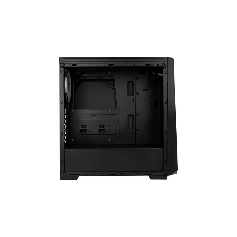 Esta é um caixa repleta de características, perfeito para os jogadores, e por detrás do seu exterior elegante existe uma quantidade notável de espaço para um poderoso hardware de jogo. De fato, até grandes motherboards E-ATX podem ser instalas, o que significa que até o PC mais moderno e sem compromissos se encaixa com espaço de sobra. Escusado será dizer que tudo isso estará em exibição através do painel lateral de vidro temperado, com elementos desagradáveis, como cabos, escondidos de maneira inteligente atrás de uma cobertura da fonte de alimentação. A frente da caixa é distinguida pela presença de um detalhe diagonal na malha, que garante um fornecimento consistente de ar fresco e um fluxo de ar ideal para todos os seus componentes. O que torna isto especial, no entanto, é que este também vem com uma faixa RGB-LED endereçável digitalmente embutida no interior, juntamente com uma ventoinha pré-instalada de 120 mm, que também possui os seus próprios LEDs dRGB. Aparência atraente e fluxo de ar eficaz, esta caixa tem tudo. Deseja entrar no modo furtivo? Há uma opção útil diretamente disponível no painel de I/O para isso. Como alternativa, a faixa e o ventilador também podem ser conectados diretamente à motherboard e controlados dessa maneira. Para uma refrigeração adicional, os usuários terão o prazer de observar a presença de uma malha estilo hexagonal com seu próprio filtro de poeira integrado no teto.