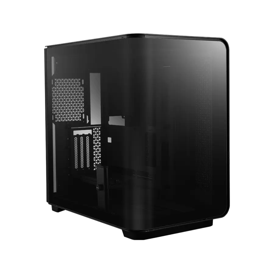 • Este Gabinete possui vidro temperado monobloco de 270 graus com película de segurança, que proporciona uma visão panorâmica do interior sem obstruções metálicas nos cantos, garantindo uma perfeita vitrine dos componentes internos.