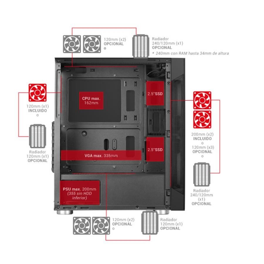 Todas as características do MC9 estão perfeitamente combinadas com 2 ventoinhas de refrigeração com iluminação Chroma RGB de 20 cm, totalmente compatível com placas ARGB e garantindo-lhe uma vasta gama de cores para maximizar ao máximo o visual da sua instalação. Obtenha a melhor circulação de ar com a melhor estética possível para sua torre.