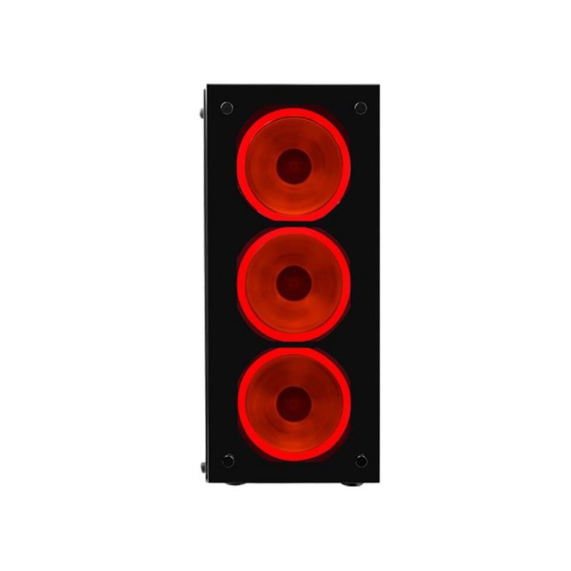 O MCG oferece uma torre intermediária para jogos equipada com 3 ventoínhas de resfriamento LED disponíveis em em vermelho. Com vidro temperado lateral e frontal, estrutura ATX/MicroATX e espaço otimizado.