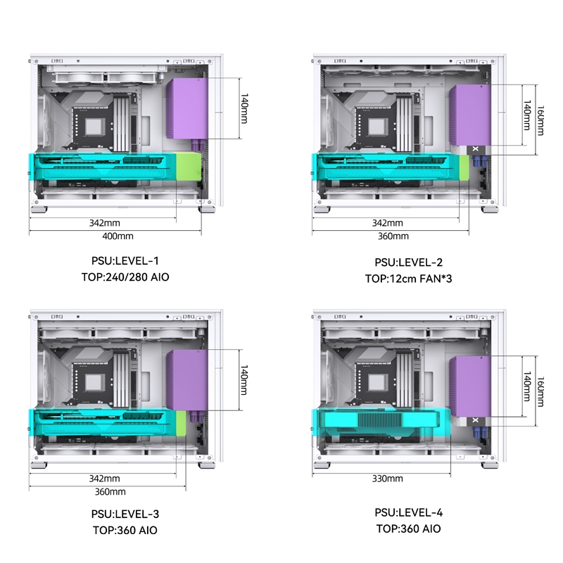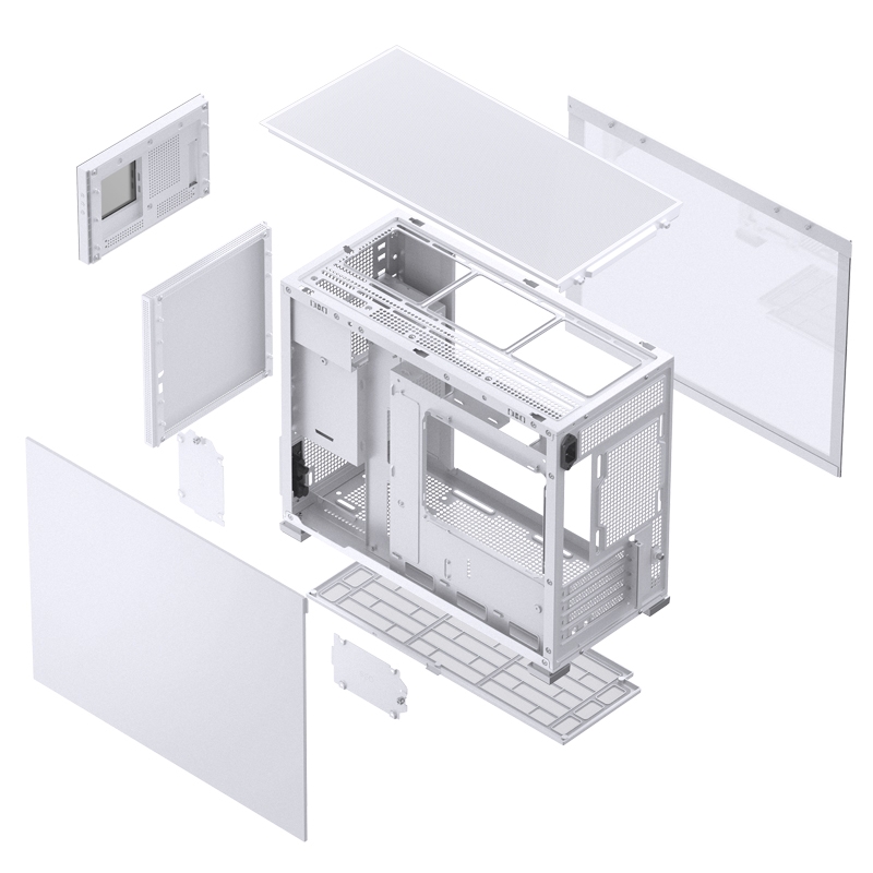 O chassis está equipado com um ecrã LCD de 8 polegadas com uma resolução de 1280 x 800 para uma nova experiência visual. O chassis tem uma janela transparente para que possa escolher os componentes brilhantes e monitorizar o desempenho do sistema. O painel frontal dispõe de portas de I/O para fácil acesso.