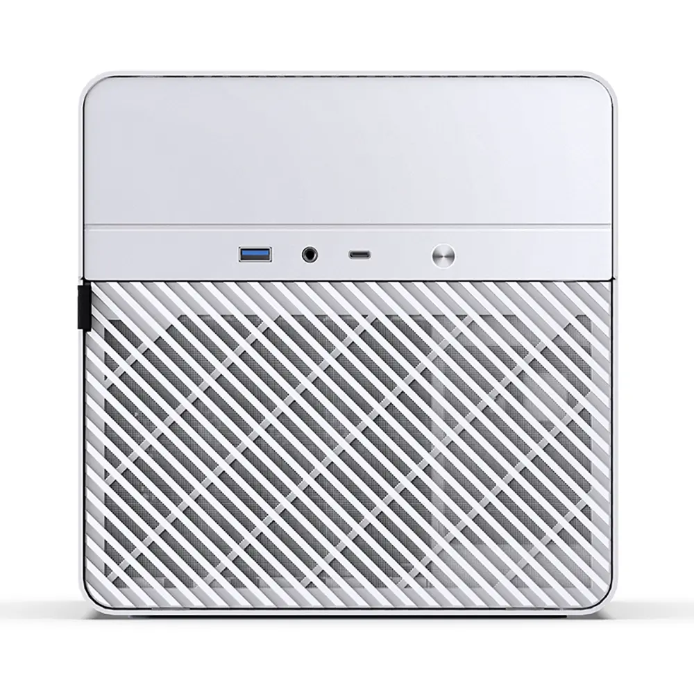 O Jonsbo N2 é um gabinete cubo para PC, com volume total de 11L e acabamento branco clássico. A base está equipada com pés antiderrapantes para proporcionar aderência e fluxo de ar natural na parte inferior do chassi. Para facilitar uma ótima conectividade, o painel frontal possui um painel de E/S com USB 3.2 Gen 2 Type-C, USB 3.0 e um conector combinado para fone de ouvido/microfone.