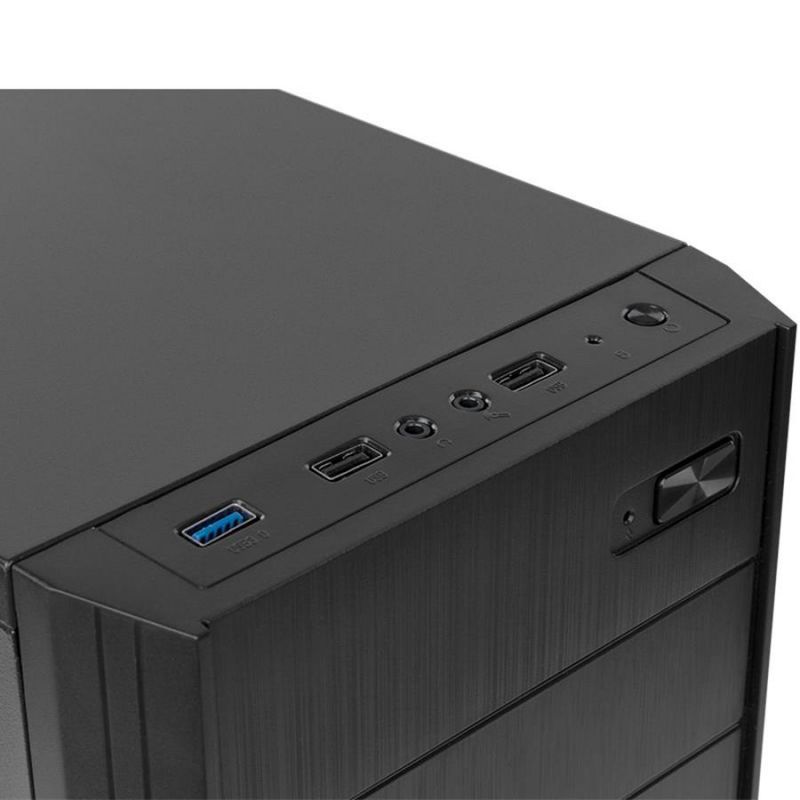 O LITE010 da Nox é projetada com acabamento escovado e totalmente preta, o que a torna em um chassi sóbrio e elegante. No painel superior, ele tem uma conexão USB 3.0 de alta velocidade , duas conexões USB 2.0 e de áudio.