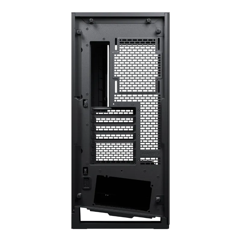 Ao desenvolver a NV5 , a Phanteks teve em mente o arrefecimento dos componentes desde o início. A caixa foi concebida para ser muito aberta e optimizada para um fluxo de ar ininterrupto. A parte superior, bem como uma parte do painel lateral direito, é feita de malha, garantindo um bom fluxo de ar. Existe também a opção de montar uma ventoinha na parte inferior para um fornecimento adicional de ar fresco.