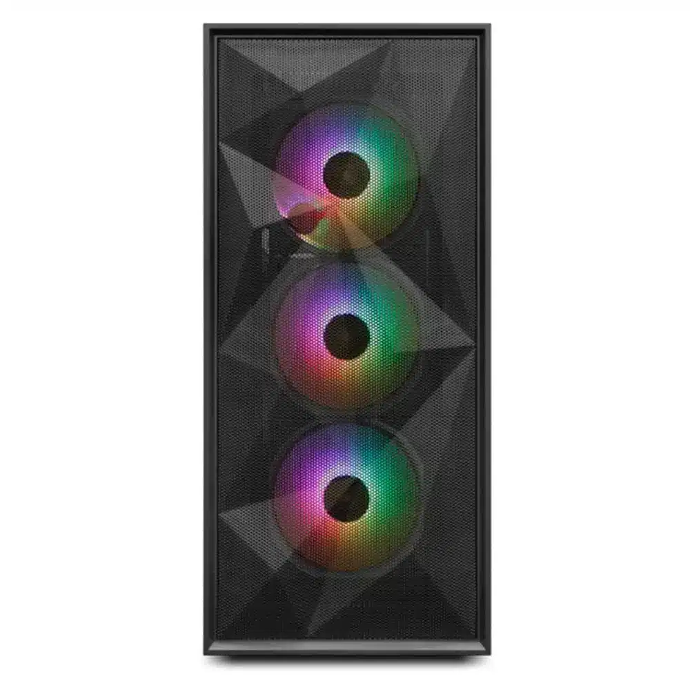 A caixa Zolyd Radion oferece um design elegante que oferece vista ampla para o interior do seu PC. Com painel lateral em vidro temperado, este chassis é uma mistura de design moderno e arte. Esta caixa de aço é compatível com grandes placas gráficas de até 340 mm e sistemas de arrefecimento líquido. Inclui também quatro ventoinhas ARGB. Caixa concebida para lhe oferecer o próximo nível em caixas para PC.