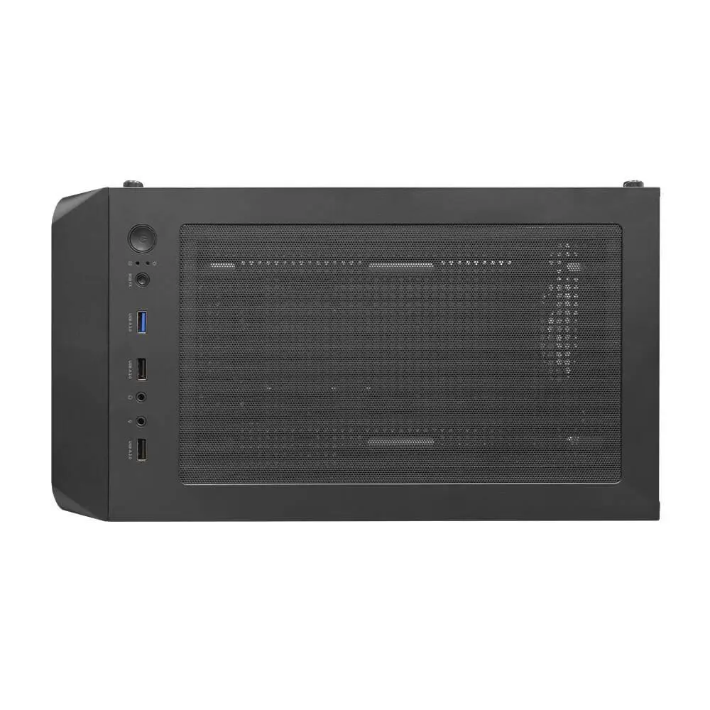 Com 1x USB-A 3.0, 2x USB-A 2.0 e entrada/saída de áudio, esta caixa de computador oferece fácil acesso às ligações essenciais para os teus dispositivos.