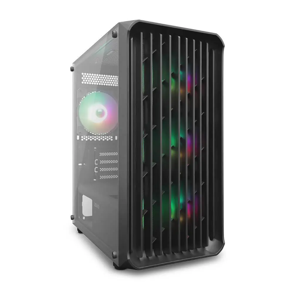 Zolyd Vyntrix, compatível com motherboards Micro-ATX e Mini-ITX, oferece um elevado desempenho num formato compacto. Com painel lateral em vidro temperado e painel frontal ripado para melhor fluxo de ar, inclui 4 ventoinhas ARGB para iluminar o teu setup. Suporta opções de refrigeração adicionais, incluindo radiadores líquidos até 240 mm, sendo ideal para setups compactos, mas potentes.