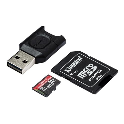 Cartão KINGSTON Canvas React Plus C10 UHS-II U3 V90 A1 microSDXC 64GB + Adaptador SD/USB