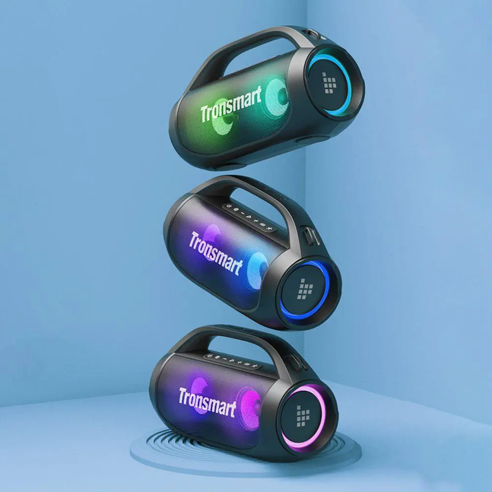 Coluna Bluetooth TRONSMART Bang SE, potência, qualidade e imersão sonora para as suas festas. Experiência de áudio vibrante e dinâmica, dando vida às suas músicas. Ideal para qualquer ambiente, seja em festas, atividades ao ar livre ou momentos de relaxamento. Dois drivers, com 40W de potência, tecnologia SoundPulse™, Bluetooth 5.3, outros modos de reprodução (AUX, Cartão MicroSD/TF e U-Disk), função TWS, iluminação LED com 3 modos, bateria de 4000mAh, oferecendo até 24 horas de reprodução contínua, função PowerBank, pega embutida, alça removível e certificação IPX6. Som de qualidade, luz e energia onde quer esteja.