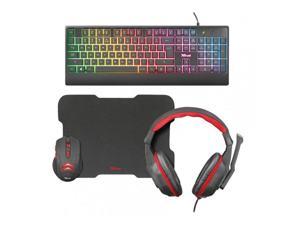 Conjunto gaming completo com teclado iluminado, rato, tapete para rato e auscultadores para começares a jogar imediatamente