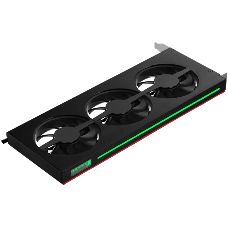 O cooler VF-1 PCI da Jonsbo fornece mais ar fresco para placas gráficas. Os três ventoinhas de 80 mm estão incorporadas numa caixa compacta de alumínio. A placa de ventoinha fina pode ser instalada num suporte de slot livre da caixa em apenas alguns passos. Com 1500 rotações por minuto, as ventoinhas atingem um débito de ar de aproximadamente 89 m³/h. A placa do ventilador é ligada com um conector de 4 pinos e um cabo de alimentação SATA. A iluminação integrada RGB proporciona um toque elegante.