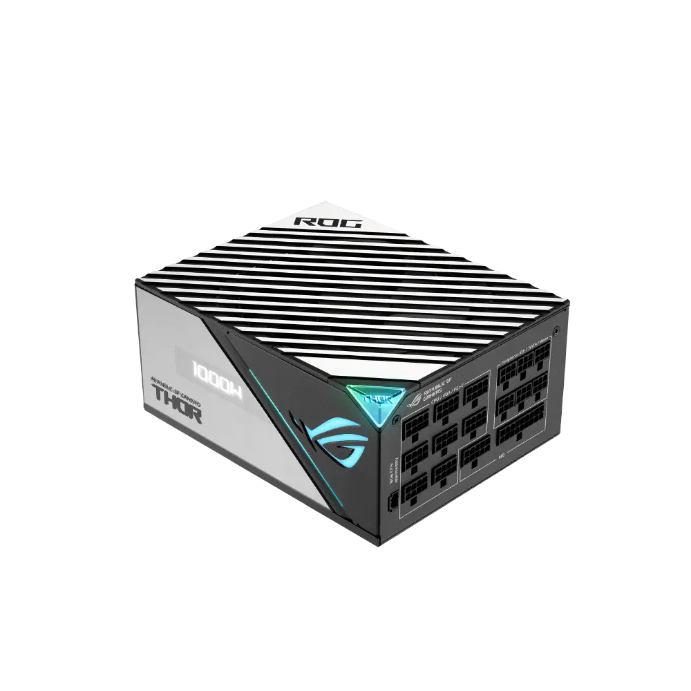 De volta com força total, a segunda geração da ROG Thor 1000W Platinum oferece refrigeramento e atualizações de componentes que a tornam a PSU mais silenciosa da sua classe, para complementar as mais recentes motherboards ROG de ponta e para equipamentos bestiais, foi adicionado um painel lateral espelhado que enquadra perfeitamente a tela OLED.