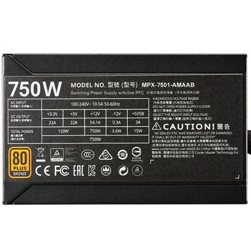 A certificação 80 PLUS Bronze garante que a MasterWatt ofereça uma eficiência média de 85%.