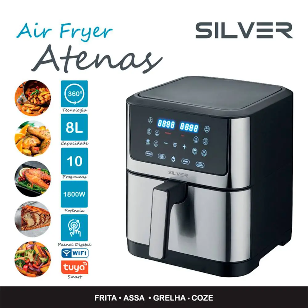 Fritadeira Ar Quente SILVER AirFryer ATENAS 8L 1800W (Preto/Inox)