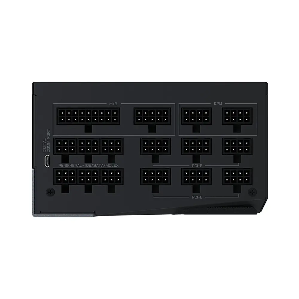 Com a ajuda das excelentes capacidades de concepção dos engenheiros e da tecnologia de dissipação de calor em vários produtos de hardware, e da utilização de materiais de maior qualidade, a AORUS reduziu o tamanho de uma fonte de alimentação de 1200W que foi geralmente concebida para ter 200 mm de comprimento para uns espantosos 160 mm, de modo a poder ser facilmente instalada em qualquer chassis sem restrições de espaço.