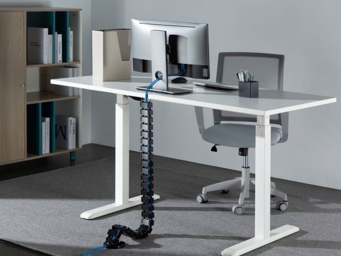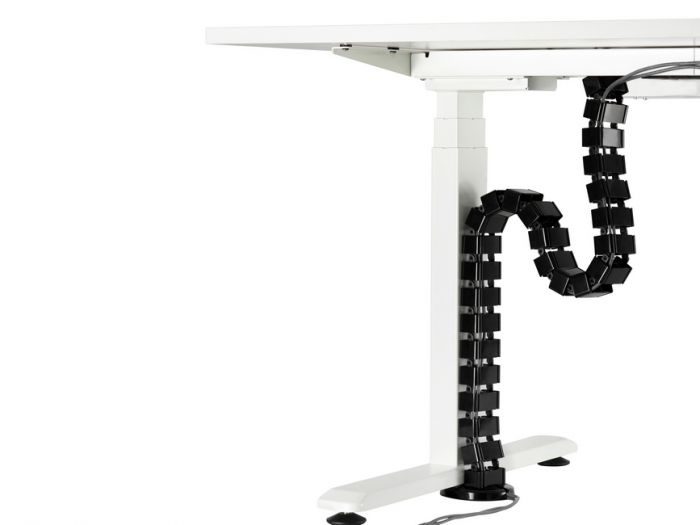 O guia para cabos equip® direciona os cabos do chão à mesa e fornece proteção mecânica e alívio de tensão. A estrutura da coluna verticais permite a separação dos cabos de alimentação dos de dados.