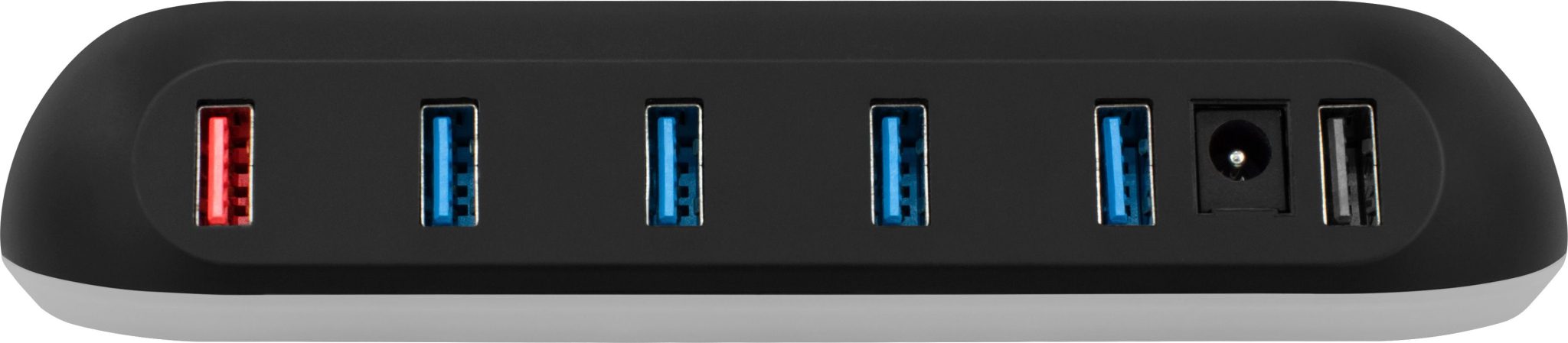 Porta USB 2A de carregamento rápido incorporada no hub assegura que o seu smartphone ou outros dispositivos permanecem totalmente carregados.