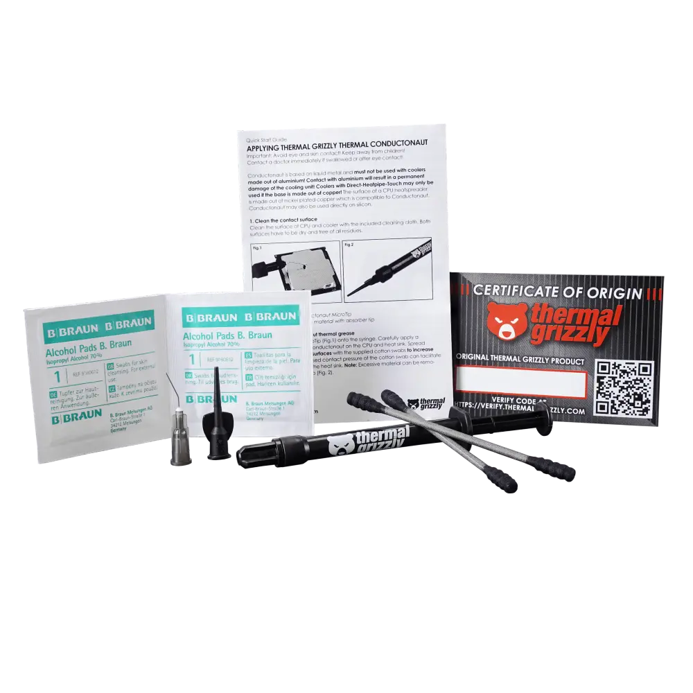 A massa térmica Conductonaut é um produto de alta eficiência. Elevada superfície de proteção e boa condutividade térmica, a Conductonaut é recomendada para os utilizadores experientes que procuram um intervalo de temperatura a partir de 8ºC.