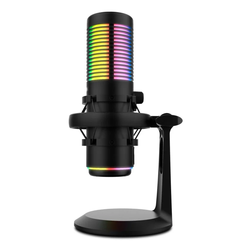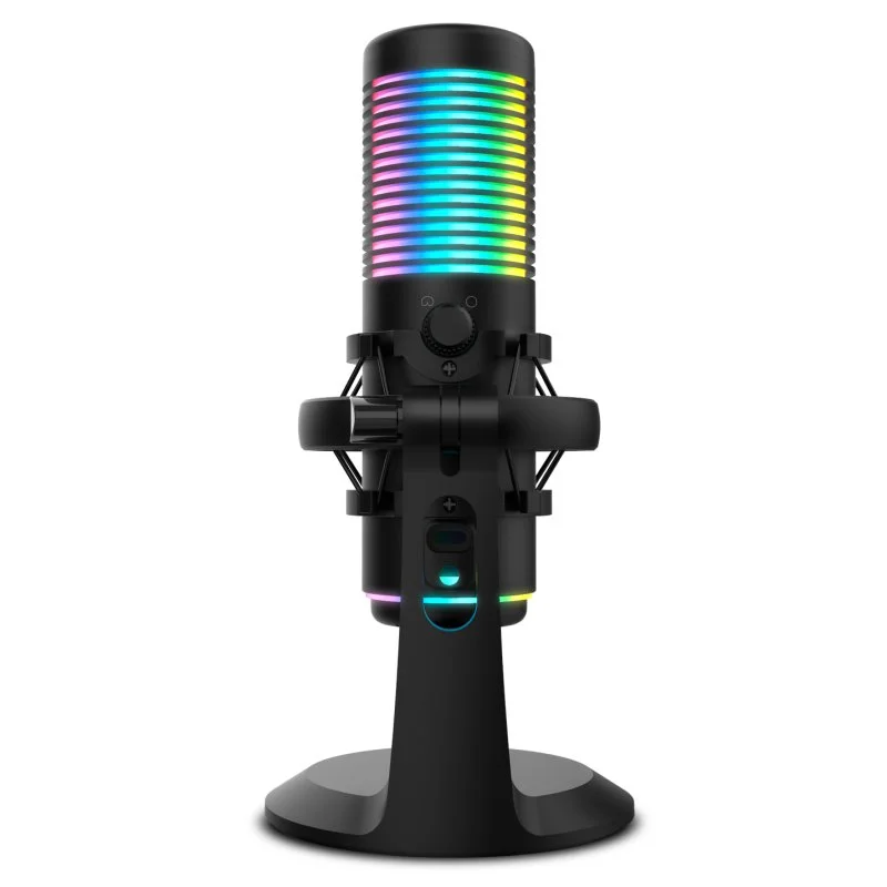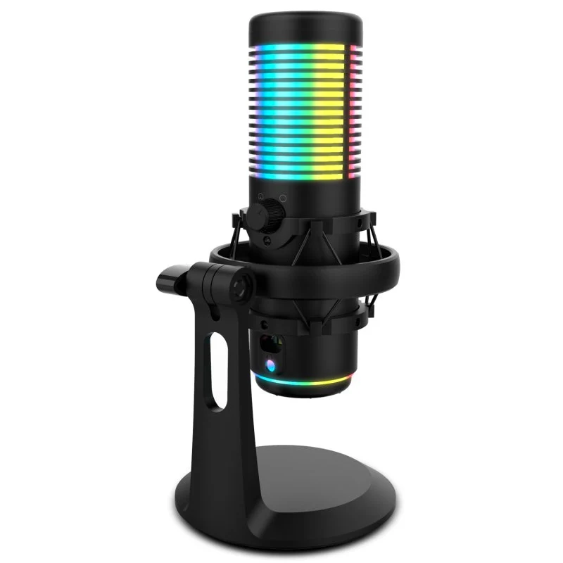 O Kaze é um microfone visualmente atrativo, com acabamento em preto. É um microfone com um design inovador criado para dar um toque diferente à sua configuração. Fabricado em metal, com suporte anti-choque, é muito estável, o que lhe permite adaptar-se facilmente a diferentes posições, oferecendo uma estética e um desempenho profissionais. Escolha entre 8 cores de iluminação para criar o ambiente de gravação ou de jogo perfeito.