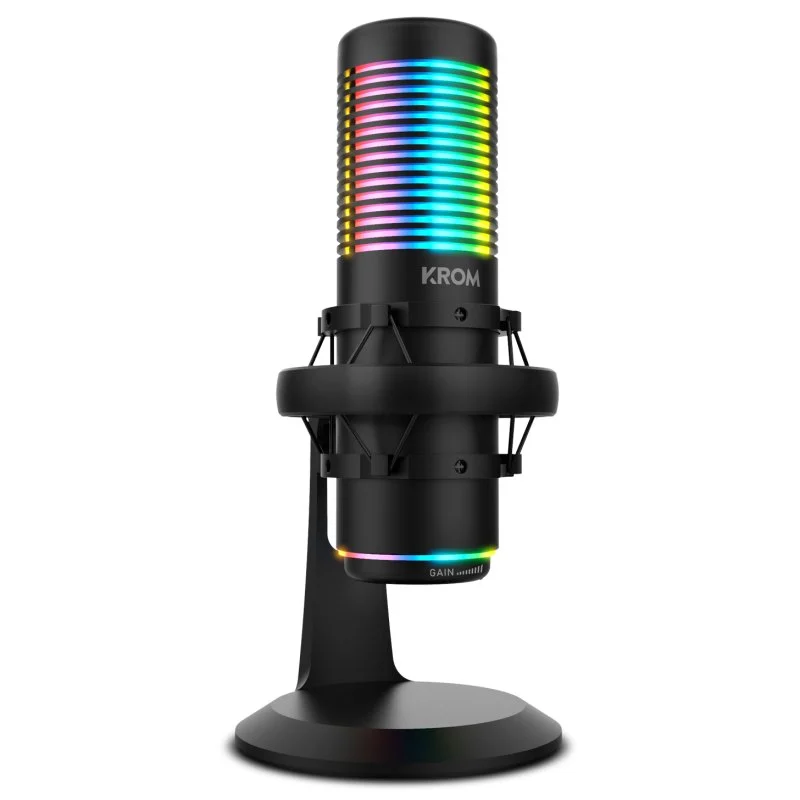 O Krom Kaze é um microfone de condensador duplo com qualidade de estúdio HD e suporte anti-choque, com o qual obterá o melhor som nas suas transmissões, podcasts, conversas ou gravações de música.