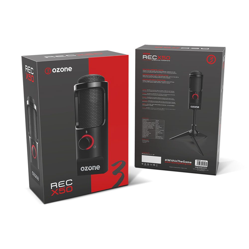 Complete a sua configuração com o Ozone REC X50 e dê um toque profissional às suas transmissões, graças a este microfone que combina som de alta qualidade com um design funcional, perfeito para obter gravações de estúdio profissionais nas suas sessões de transmissão, podcasts ou narrações.