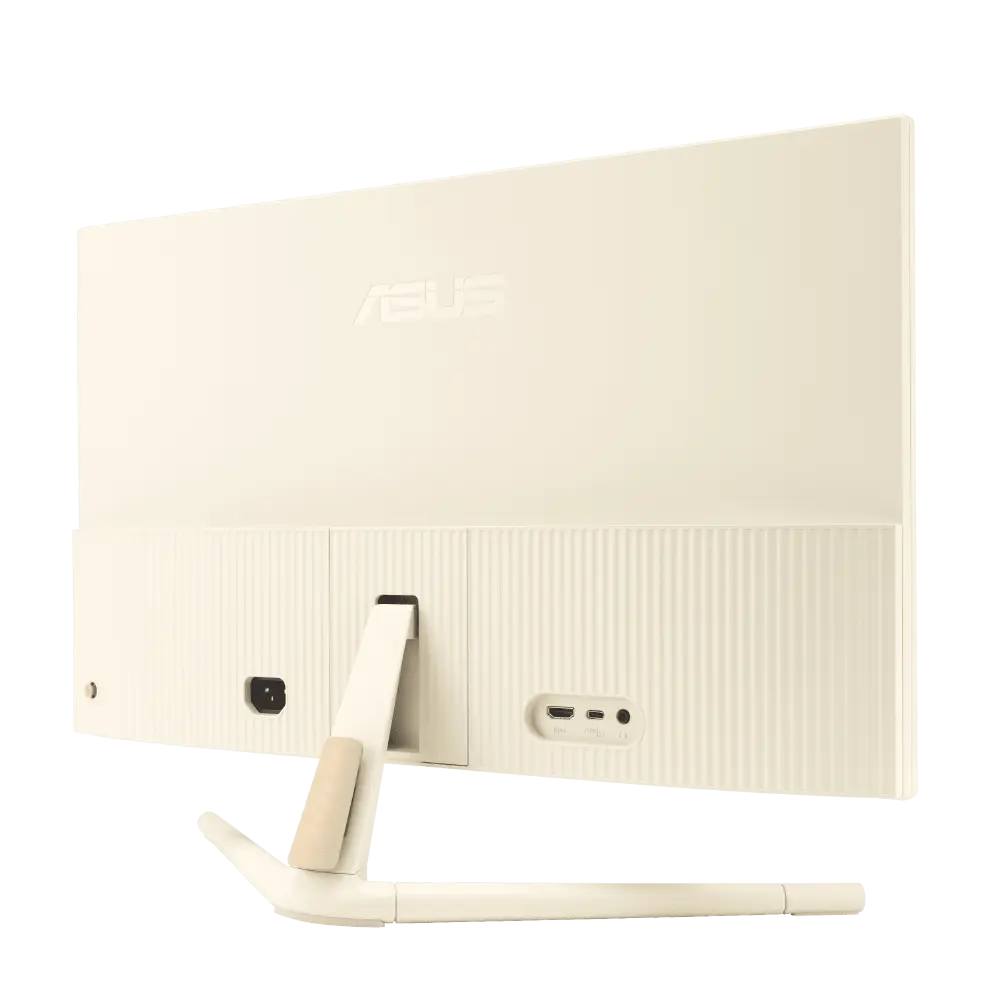 Elementos de design bem pensados fazem com que os monitores ASUS VU se adaptem perfeitamente a qualquer configuração de PC. As pernas longas e finas do suporte seguram os monitores de forma segura sem ocupar demasiado espaço na secretária. Os monitores VU são práticos, mas também são divertidos. Escolha entre quatro opções de cores, cada uma com a sua própria personalidade: Quiet Blue, Green Grey, Oat Milk e Rose Clay. Com esta gama de ecrãs coloridos, encontrará certamente uma opção que se enquadra na estética de toda a configuração do seu PC.