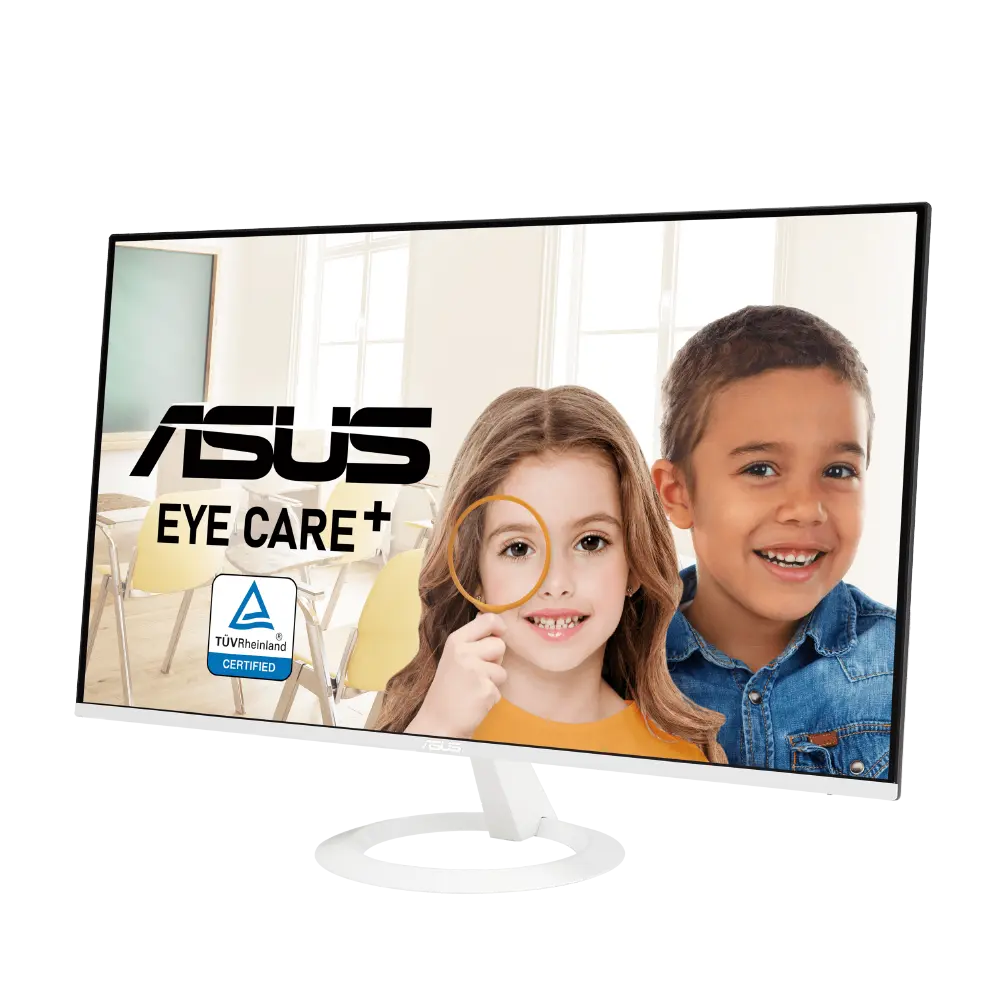 O monitor Gaming ASUS VZ27EHF-W Eye Care possui um painel IPS de 27” com resolução Full HD (1920 x 1080), proporcionando um perfil ultrafino que mede apenas 6.5 mm no seu ponto mais fino e uma qualidade de imagem viva. Com uma velocidade de atualização rápida de 100Hz e tecnologia Adaptive-Sync para eliminar o efeito de “desfasamento” do ecrã e as frame-rates instáveis para uma experiência mais suave do que nunca. Também dispõe das tecnologias Flicker-Free e Low Blue Light certificadas pela TÜV Rheinland para garantir uma experiência de visualização confortável.