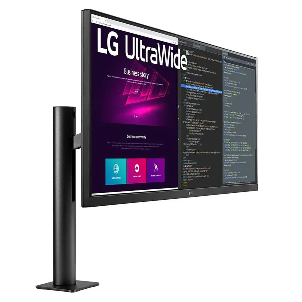 O ecrã QHD UltraWide™ (resolução 3440×1440, formato 21:9) é excelente para trabalhar. Isto permite a monitorização de grandes quantidades de imagens para edição de vídeo e podem ser exibidos imensos plugins e efeitos de áudio ao mesmo tempo.