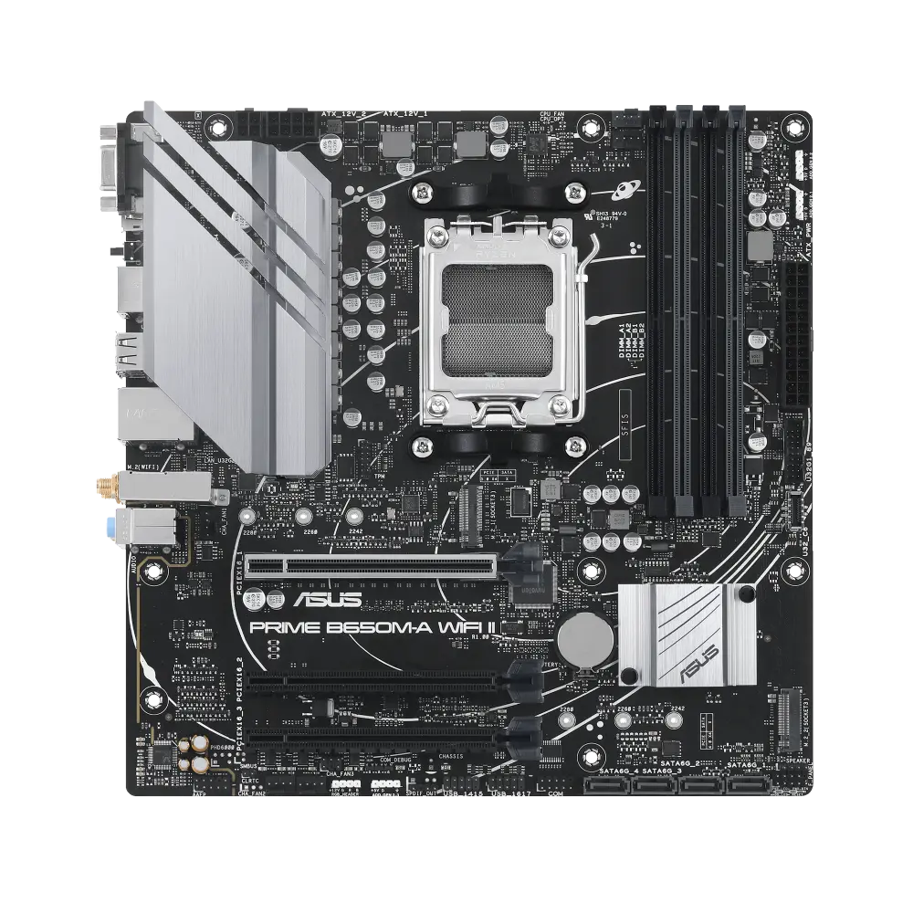 As Motherboards da série ASUS Prime são habilmente projetadas para liberar todo o potencial dos processadores AMD Ryzen série 7000. Com um design de potência robusto, soluções de arrefecimento abrangentes e opções de afinação inteligentes, a PRIME B650M-A WIFI II oferece aos utilizadores e aos construtores de PC DIY uma gama de optimizações de desempenho através de software intuitivo e funcionalidades de firmware.