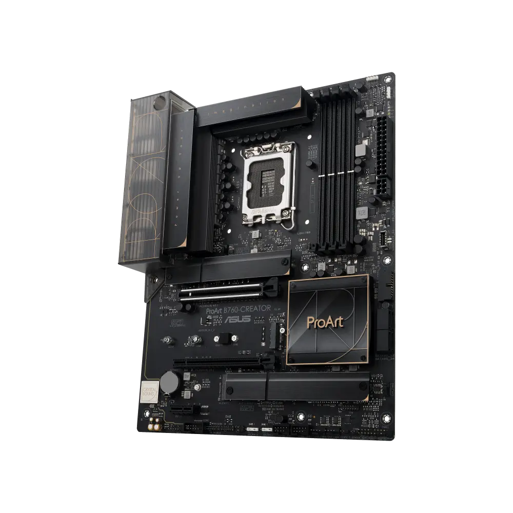 A ProArt B760-CreatoR da Asus é uma motherboard melhorada, concebida para volumes de trabalho de criação de conteúdos, como produção virtual, renderização 3D e edição de vídeo 4K/8K. Liberta a performance dos processadores Intel® Core™ da 13ª e 12ª geração através de um design robusto de fornecimento de energia e arrefecimento, e a sua conectividade abrangente inclui três ranhuras M.2, Ethernet 2.5 Gb e 1 Gb, um conector USB 3.2 Gen 2×2 Type-C® no painel frontal e um conetor Thunderbolt™ 4.
