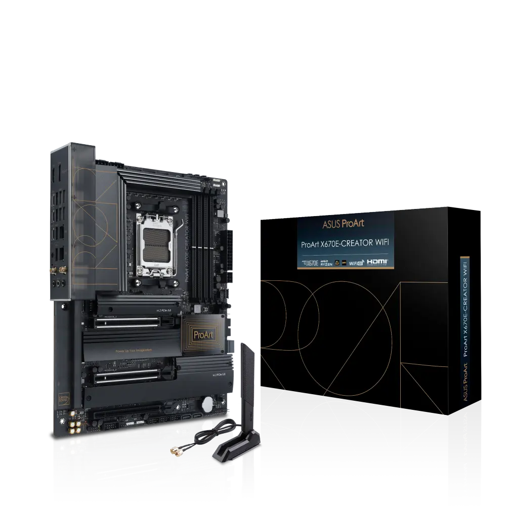 A ProArt X670E-Creator WiFi apresenta quatro ranhuras M.2 a bordo, duas das quais são PCIe 5.0 prontas para oferecer uma velocidade de 16 GB/s, enquanto o par restante pode ainda fornecer transferências maciças de 8 GB/s através das suas interfaces PCIe 4.0.