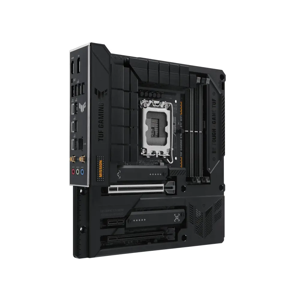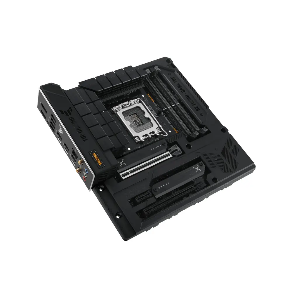 As motherboards TUF GAMING B760M oferecem um pacote de jogos de alto desempenho e repleto de recursos com rede ultrarrápida para online gaming mais fluido, áudio cristalino com dicas de posição para jogos FPS e iluminação RGB integrada que sincroniza com equipamentos conectados para personalizar a sua atmosfera gaming.