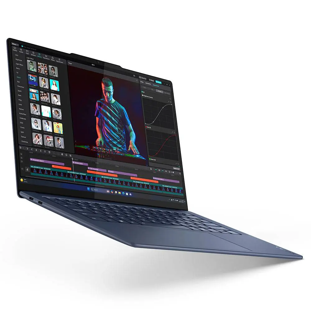 Lenovo Yoga Slim 7x ultrafino a bordo! A partir de apenas 1,28 kg e 12,9 mm, esta é a última geração em potência portátil. Com o seu Design Comfort Edge e o seu chassis Cosmic Blue, foi concebido para criadores em movimento. E atende aos padrões de durabilidade MIL-STD-810H de nível militar, e por isso é que é resistente e elegante.