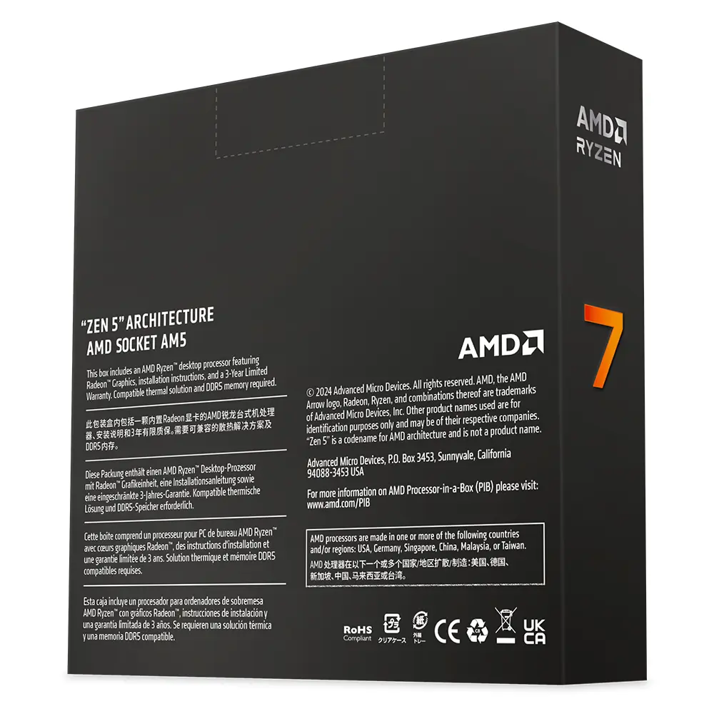 O AMD Ryzen 7 9700X é um processador de alto desempenho da AMD, projetado para utilizadores que exigem potência e eficiência. Com 8 núcleos e 16 threads, este processador é ideal para multitarefa intensiva, jogos exigentes e aplicações profissionais, como edição de vídeo e modelação 3D.O Ryzen 7 9700X oferece uma velocidade base de 3.8 GHz, que pode ser aumentada até 4.5 GHz com a tecnologia Precision Boost da AMD. Com suporte para PCIe 4.0, garante uma conectividade rápida e eficaz com as mais recentes placas gráficas e unidades de armazenamento NVMe.