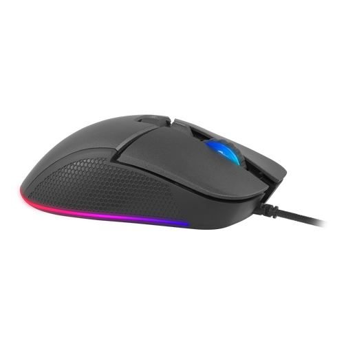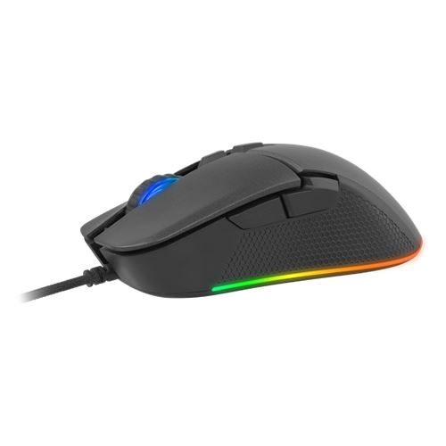 Rato ótico gaming com sensor de 6400 DPI e iluminação dinâmica LED RGB. Software de personalização incluído.
