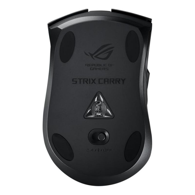 O rato ROG Strix Carry é um rato gaming portátil e sem fios, composto por tecnologias de elevada performance, dupla conectividade e um sensor gaming PMW3330 ajustável até 7200 DPI. O Strix Carry é, também, extremamente eficiente e possui uma bateria de longa duração quando conectado via Bluetooth.