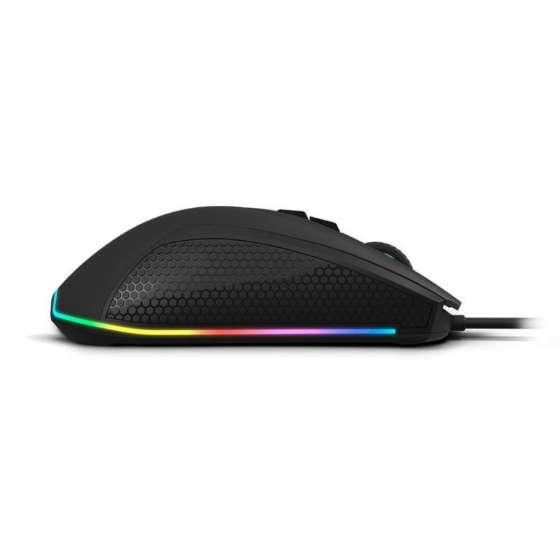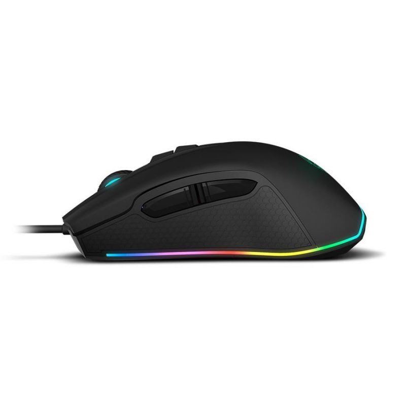 Kenon é o rato da Krom que combina design e aderência para tornar cada batalha numa experiência única. Possui um sensor óptico preciso (AVAGO A3050) e tecnologia Omrom para garantir maior durabilidade. Além disso, você pode configurar a sua sensibilidade (até 5 níveis de DPI: 1000-4000) a partir do seu software intuitivo, que também permite regular os diferentes efeitos da iluminação RGB e, portanto, experimentar uma maior imersão no jogo.