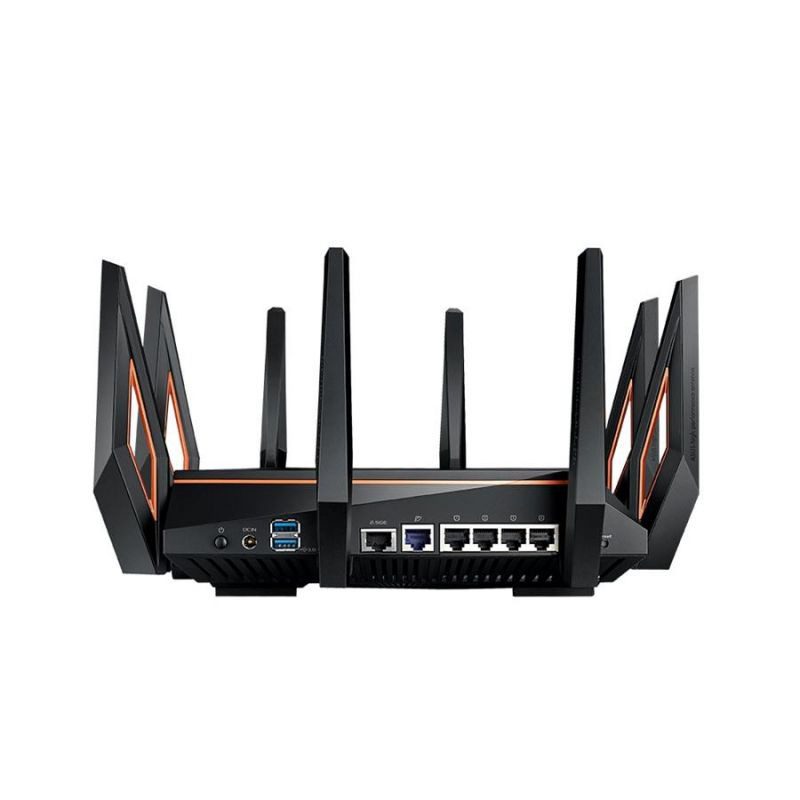 Além do incrível desempenho sem fio, o GT-AX11000 vem com uma porta WAN / LAN de 2.5G para transferências de dados até 2.5X mais rápidas que a Ethernet comum. O router é alimentado por um CPU quad-core de 1.8GHz 64-bit para lidar facilmente com jogos on-line, sobrecarregar as transferências de dados via USB e equipar as LAN parties. Para maior comodidade, um botão personalizável na frente do router permite que você controle instantaneamente uma função à sua escolha, como a iluminação RGB Aura, o Game Boost ou as bandas DFS.