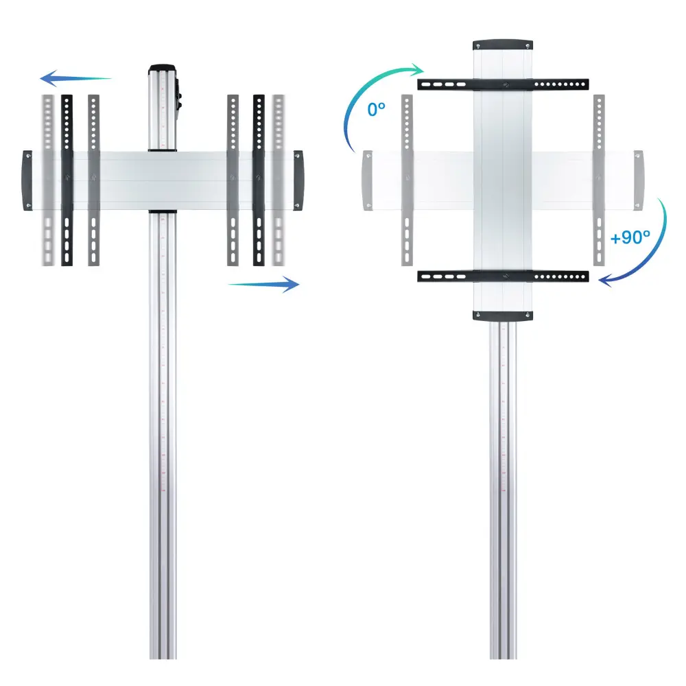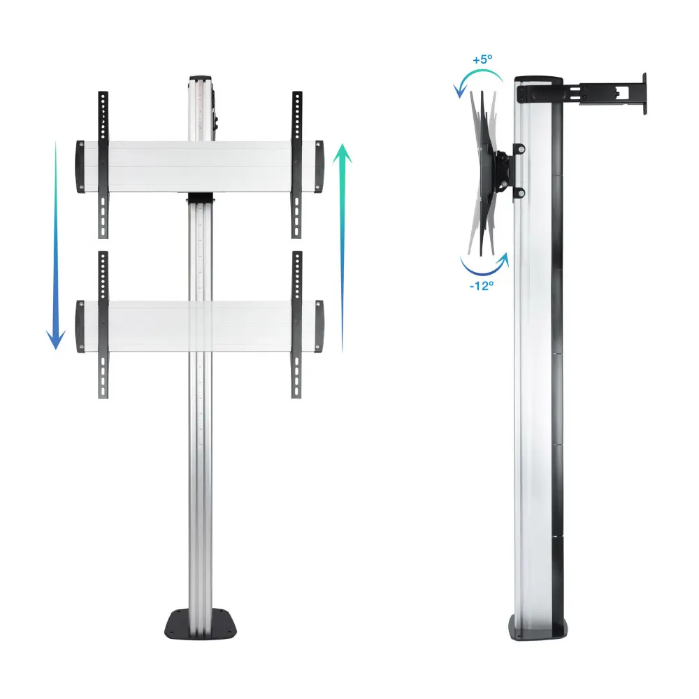 O TooQ THE TOWER é um suporte de chão vertical para ecrãs planos de 37″ a 70″, com uma prateleira. Suporta até 70 kg, e é feito de alumínio de alta resistência, com a elevada qualidade dos produtos TooQ. O mecanismo de inclinação permite um fácil ajuste do ângulo e reduz os reflexos das luzes ou janelas. A altura do painel é ajustável para atender a diferentes necessidades de visualização.