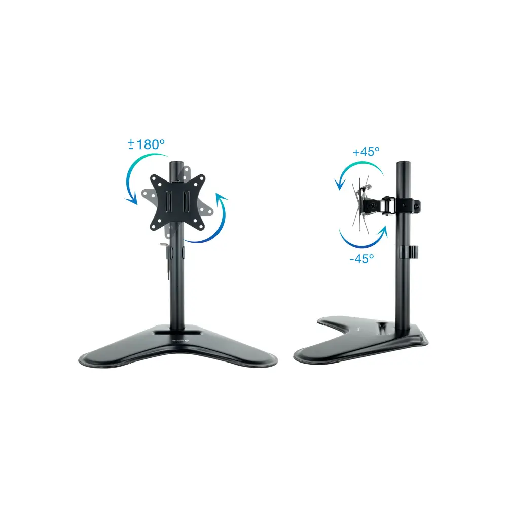 Com o nosso stand pode ter um stand limpo e arrumado. Pode configurar e adaptar com as possibilidades de inclinar, rodar ou girar o seu ecrã. Pode desfrutar da posição mais confortável para trabalhar ou a ver um filme. Não é necessária instalação.